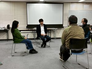 浅香山病院 ソーシャルワーカーの古市尚志様を講師としてお招きし、オープンダイアローグ(対話による支援)の理念を学んだうえで、実際のワークを通じて体験的に理解を深める構成で行いました。