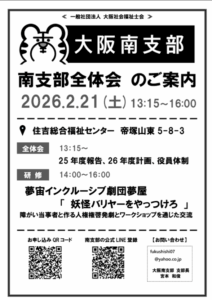 大阪南支部全体会を2026.2.21(土)に開催いたします。